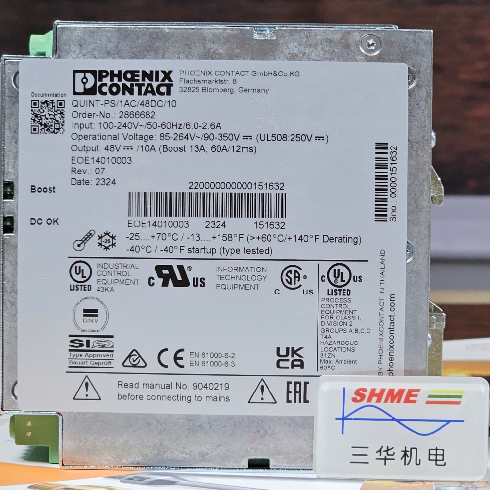 · Конкретная модель: QUINT PS-100-240AC/24DC/5 — это источник питания постоянного тока 5 А, 24 В.